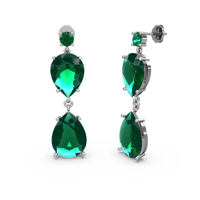 Yeşil kuvars 18 ayar beyaz altın küpe