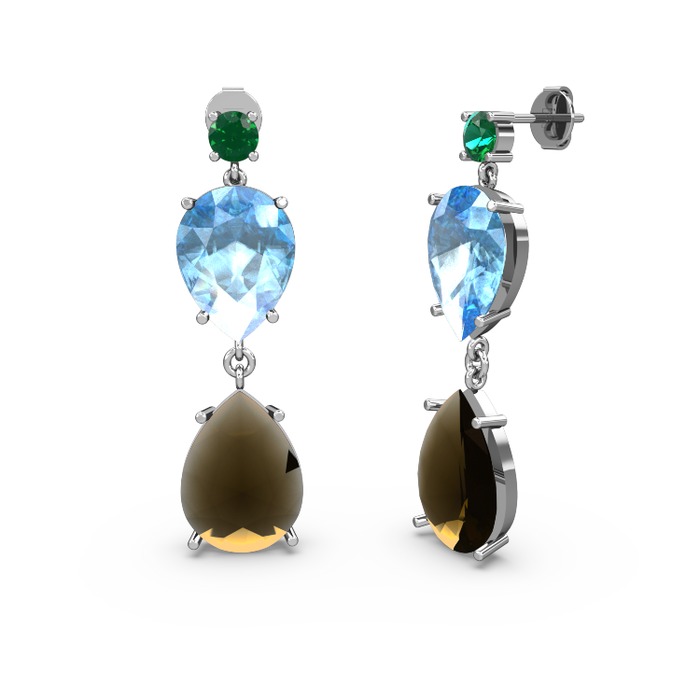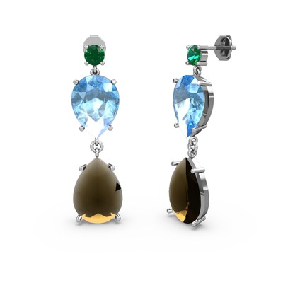 Yeşil kuvars, dumanlı kuvars ve akuamarin 925 ayar gümüş küpe