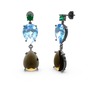 Yeşil kuvars, dumanlı kuvars ve akuamarin 925 ayar siyah rodyum kaplama gümüş küpe