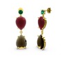 Yeşil kuvars, dumanlı kuvars ve kök yakut 925 ayar altın kaplama gümüş küpe
