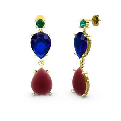 Yeşil kuvars, kök yakut ve lab safir 8 ayar altın küpe