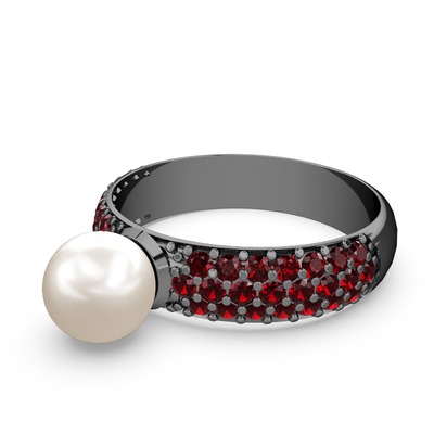 Inci ve garnet 925 ayar siyah rodyum kaplama gümüş yüzük