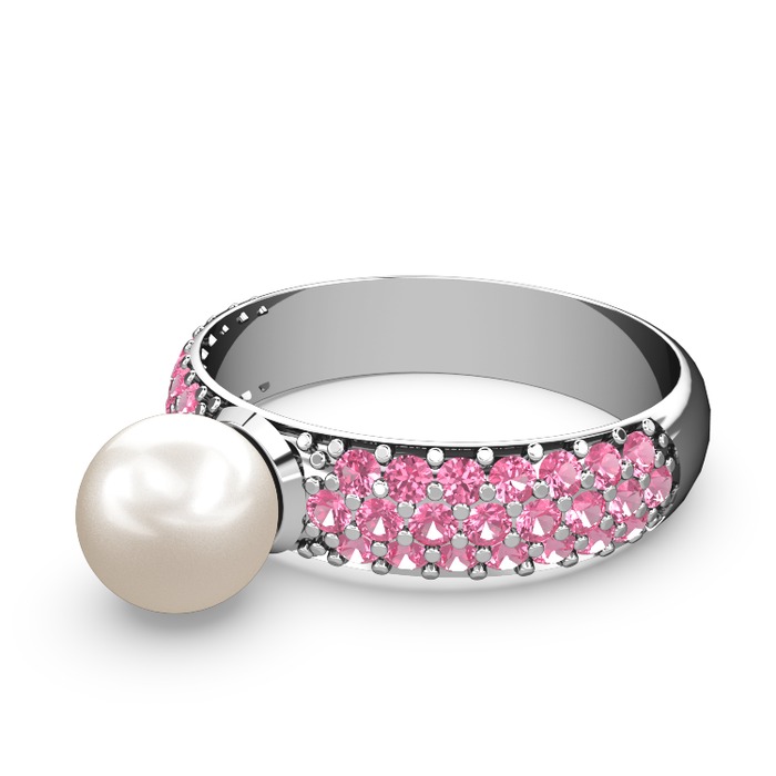 Inci ve pembe kuvars 14 ayar beyaz altın yüzük