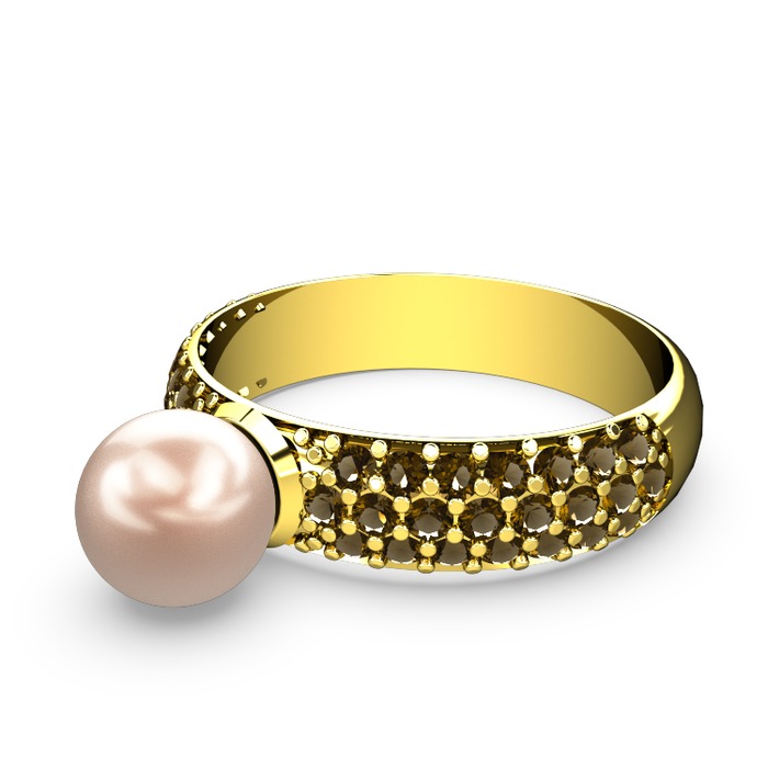 Pembe inci ve dumanlı kuvars 18 ayar altın yüzük