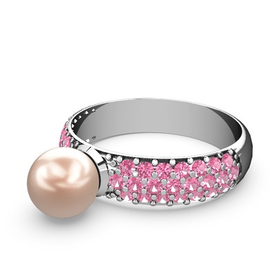 Pembe inci ve pembe kuvars 8 ayar beyaz altın yüzük