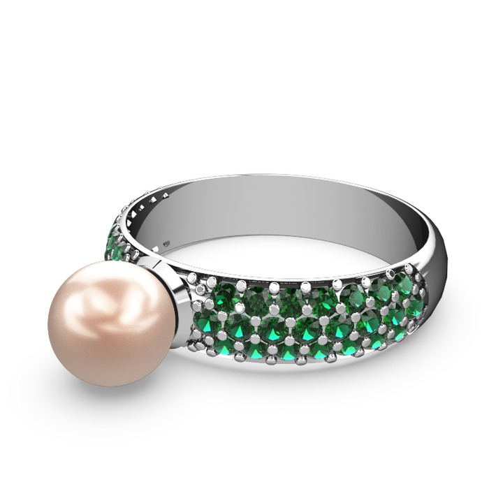 Pembe inci ve yeşil kuvars 14 ayar beyaz altın yüzük