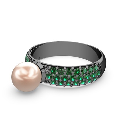 Pembe inci ve yeşil kuvars 925 ayar siyah rodyum kaplama gümüş yüzük