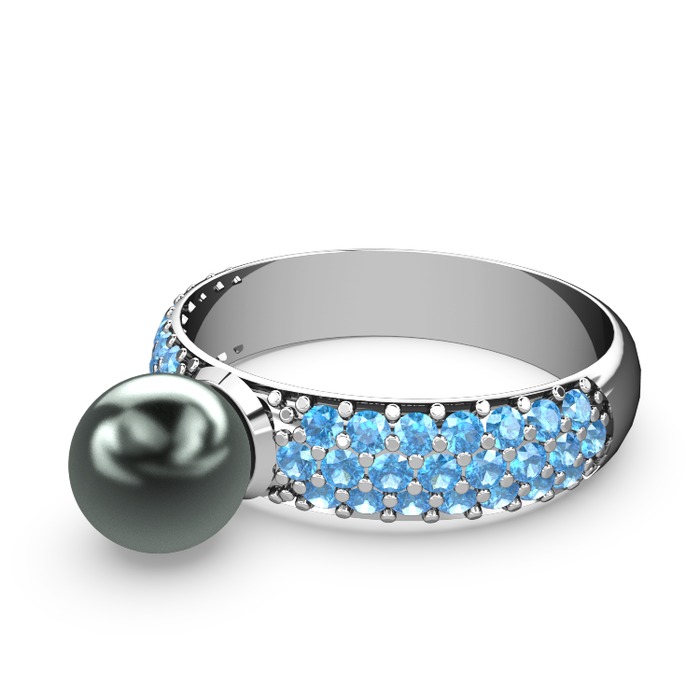 Siyah inci ve akuamarin 925 ayar gümüş yüzük