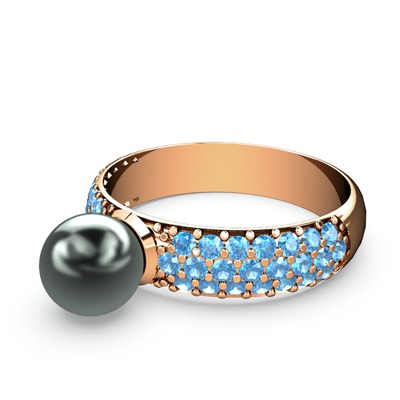 Siyah inci ve akuamarin 925 ayar rose altın kaplama gümüş yüzük