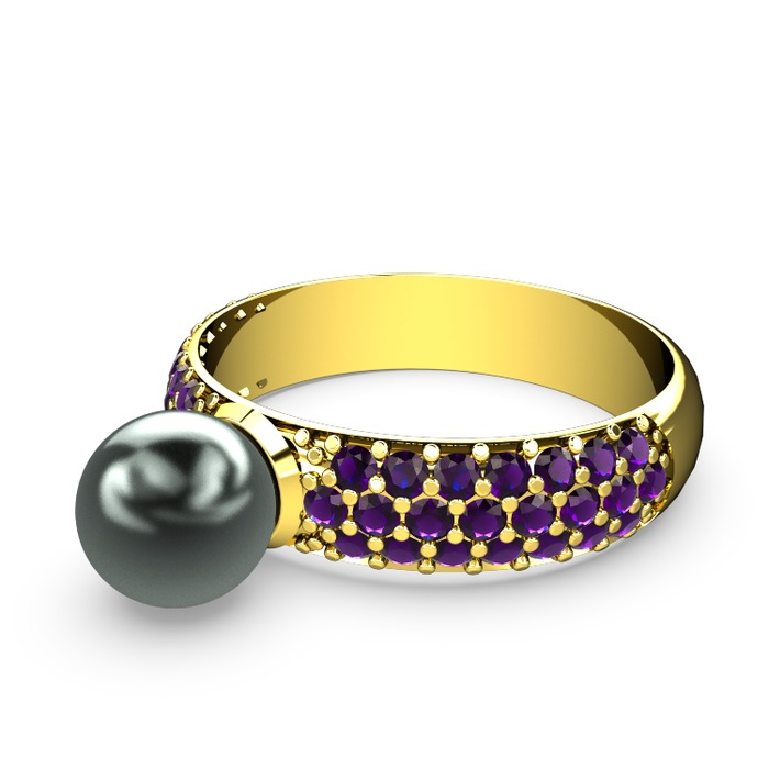 Siyah inci ve ametist 925 ayar altın kaplama gümüş yüzük