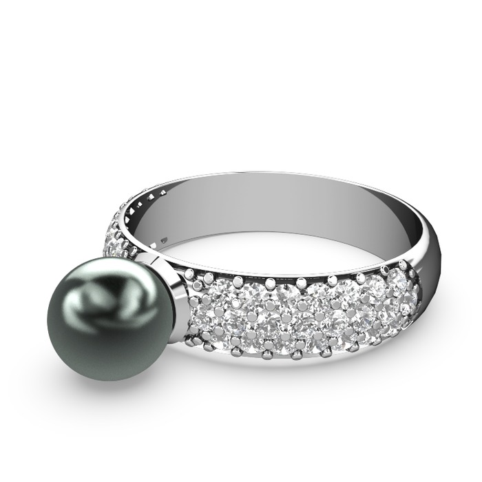Siyah inci ve beyaz zirkon 18 ayar beyaz altın yüzük