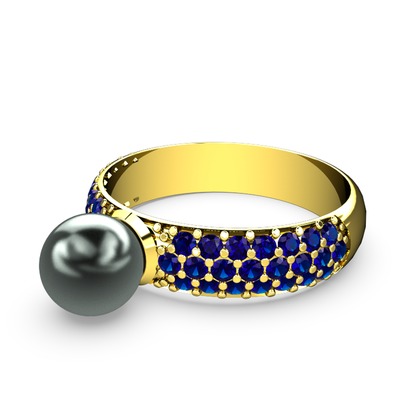 Siyah inci ve lab safir 18 ayar altın yüzük