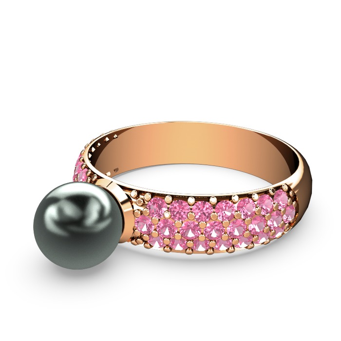 Siyah inci ve pembe kuvars 14 ayar rose altın yüzük