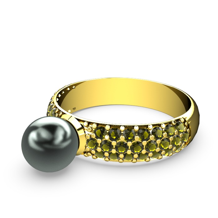 Siyah inci ve peridot 14 ayar altın yüzük