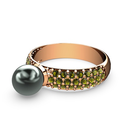 Siyah inci ve peridot 14 ayar rose altın yüzük