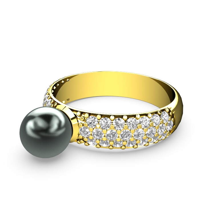 Siyah inci ve pırlanta 14 ayar altın yüzük (0.66 karat)