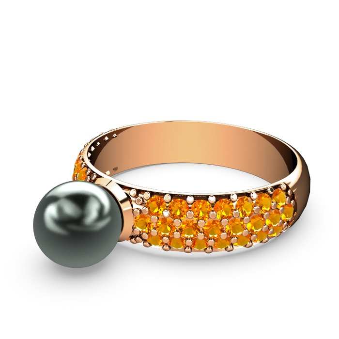 Siyah inci ve sitrin 18 ayar rose altın yüzük