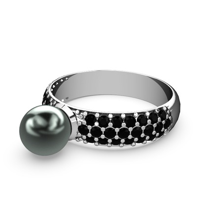 Siyah inci ve siyah zirkon 925 ayar gümüş yüzük