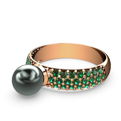 Siyah inci ve yeşil kuvars 14 ayar rose altın yüzük
