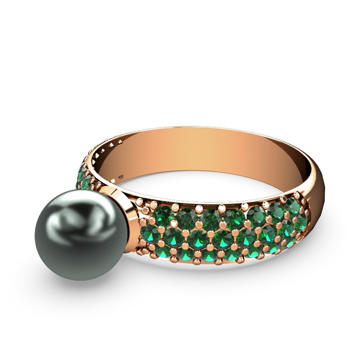 Siyah inci ve yeşil kuvars 8 ayar rose altın yüzük