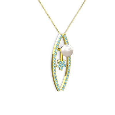 Inci ve akuamarin 18 ayar altın kolye (40 cm altın rolo zincir)