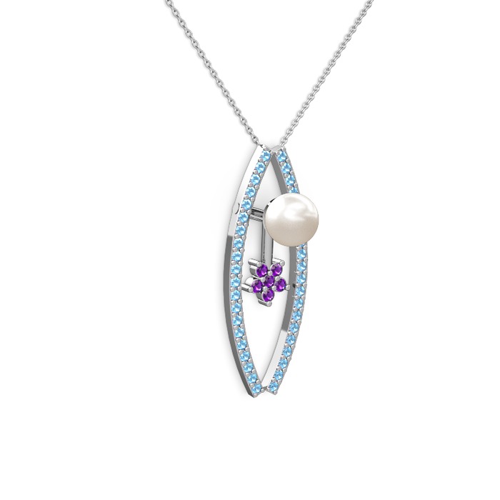 Inci, akuamarin ve ametist 8 ayar beyaz altın kolye (40 cm beyaz altın rolo zincir)