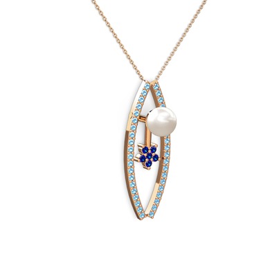 Inci, akuamarin ve lab safir 14 ayar rose altın kolye (40 cm rose altın rolo zincir)