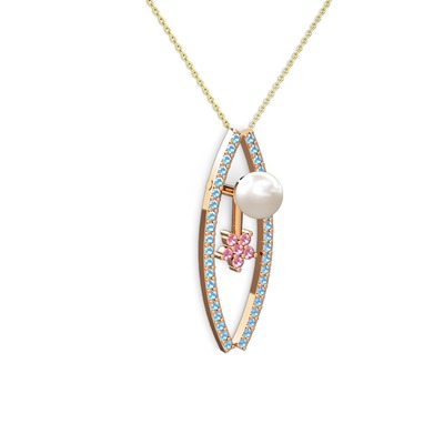 Inci, akuamarin ve pembe kuvars 8 ayar rose altın kolye (40 cm altın rolo zincir)