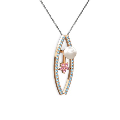 Inci, akuamarin ve pembe kuvars 8 ayar rose altın kolye (40 cm gümüş rolo zincir)