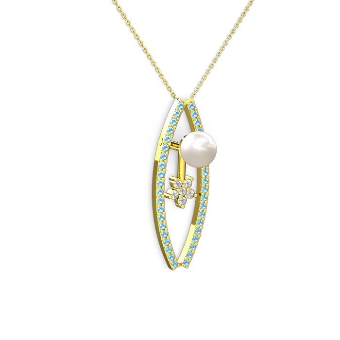Inci, akuamarin ve pırlanta 18 ayar altın kolye (0.066 karat, 40 cm altın rolo zincir)