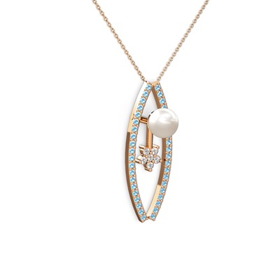 Inci, akuamarin ve pırlanta 8 ayar rose altın kolye (0.066 karat, 40 cm gümüş rolo zincir)