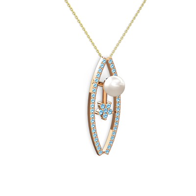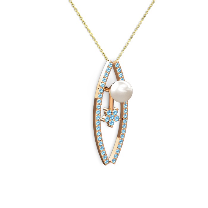 Inci ve akuamarin 925 ayar rose altın kaplama gümüş kolye (40 cm altın rolo zincir)