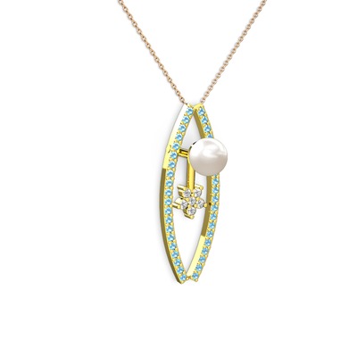 Inci, akuamarin ve swarovski 8 ayar altın kolye (40 cm rose altın rolo zincir)