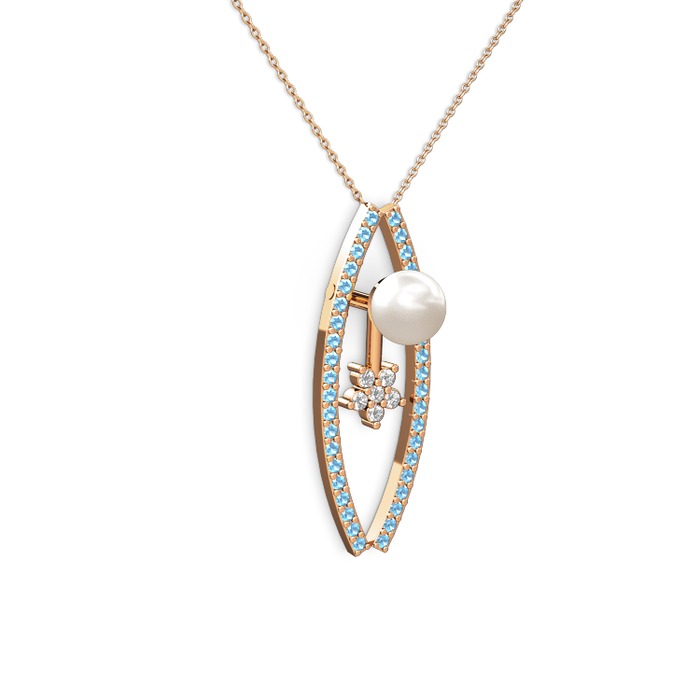 Inci, akuamarin ve swarovski 8 ayar rose altın kolye (40 cm rose altın rolo zincir)