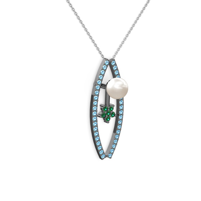 Inci, akuamarin ve yeşil kuvars 925 ayar siyah rodyum kaplama gümüş kolye (40 cm beyaz altın rolo zincir)