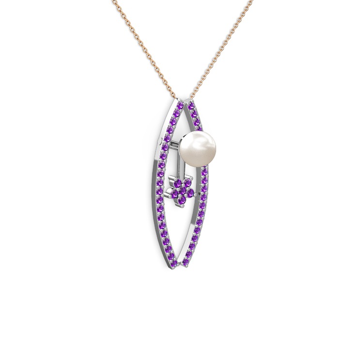 Inci ve ametist 14 ayar beyaz altın kolye (40 cm rose altın rolo zincir)