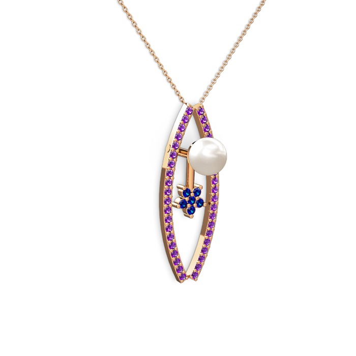 Inci, ametist ve lab safir 925 ayar rose altın kaplama gümüş kolye (40 cm gümüş rolo zincir)