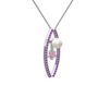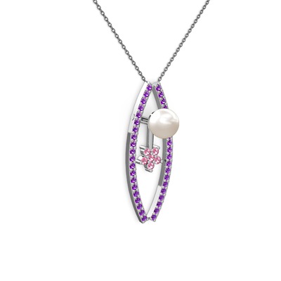 Inci, ametist ve pembe kuvars 18 ayar beyaz altın kolye (40 cm gümüş rolo zincir)
