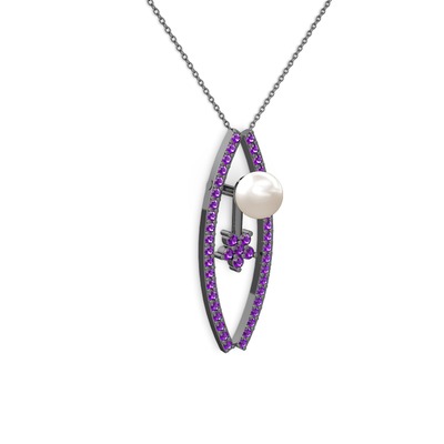 Inci ve ametist 925 ayar siyah rodyum kaplama gümüş kolye (40 cm gümüş rolo zincir)
