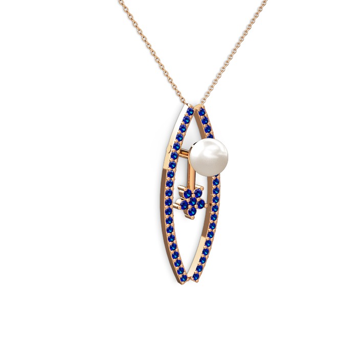 Inci ve lab safir 14 ayar rose altın kolye (40 cm rose altın rolo zincir)