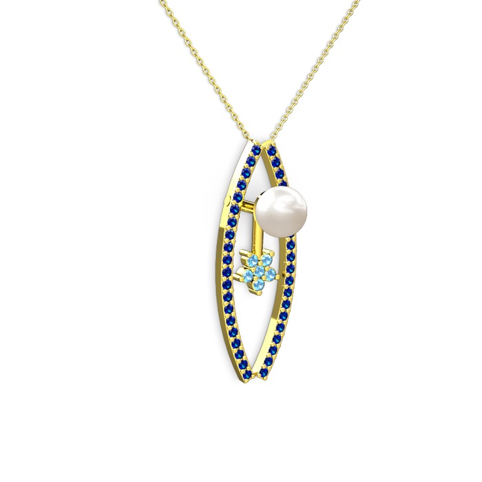 Inci, lab safir ve akuamarin 925 ayar altın kaplama gümüş kolye (40 cm gümüş rolo zincir)