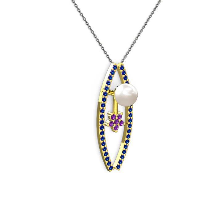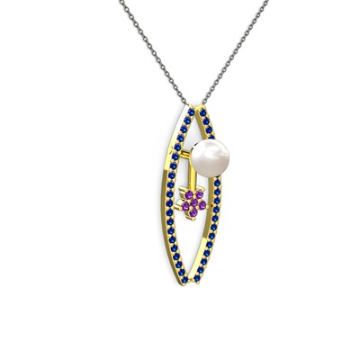 Inci, lab safir ve ametist 925 ayar altın kaplama gümüş kolye (40 cm gümüş rolo zincir)