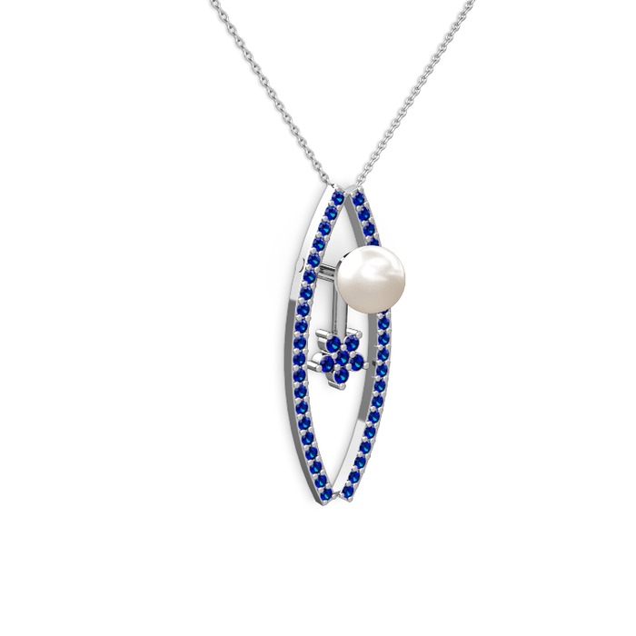 Inci ve lab safir 925 ayar gümüş kolye (40 cm beyaz altın rolo zincir)