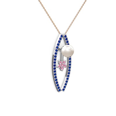 Inci, lab safir ve pembe kuvars 925 ayar gümüş kolye (40 cm gümüş rolo zincir)
