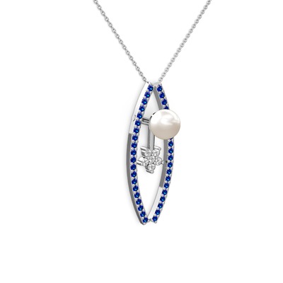 Inci, lab safir ve pırlanta 14 ayar beyaz altın kolye (0.066 karat, 40 cm beyaz altın rolo zincir)