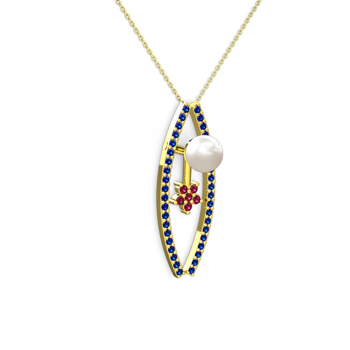 Inci, lab safir ve rodolit garnet 925 ayar altın kaplama gümüş kolye (40 cm altın rolo zincir)