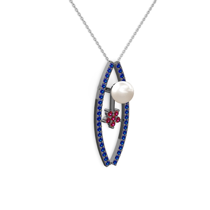 Inci, lab safir ve rodolit garnet 925 ayar siyah rodyum kaplama gümüş kolye (40 cm beyaz altın rolo zincir)
