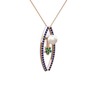 Inci, lab safir ve yeşil kuvars 925 ayar rose altın kaplama gümüş kolye (40 cm rose altın rolo zincir)
