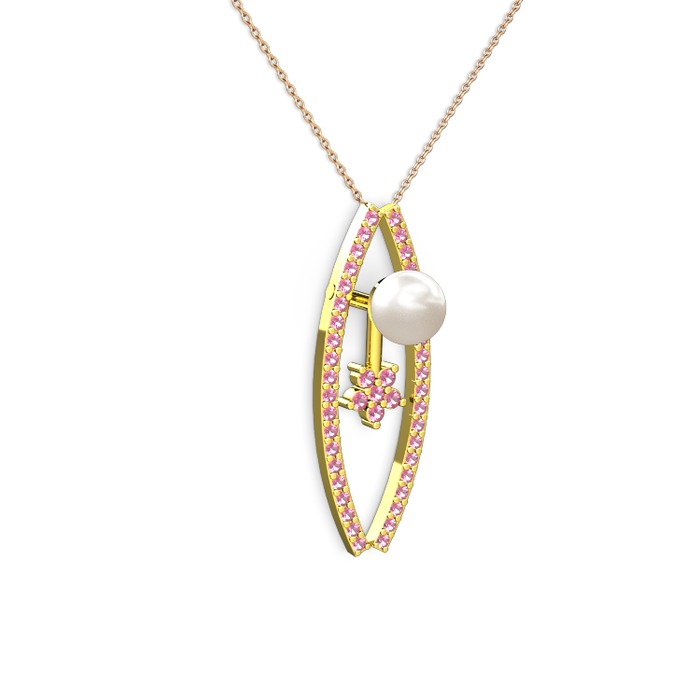 Inci ve pembe kuvars 14 ayar altın kolye (40 cm rose altın rolo zincir)