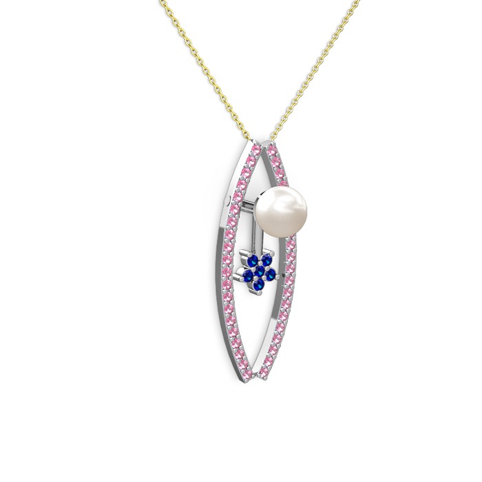 Inci, pembe kuvars ve lab safir 925 ayar gümüş kolye (40 cm altın rolo zincir)